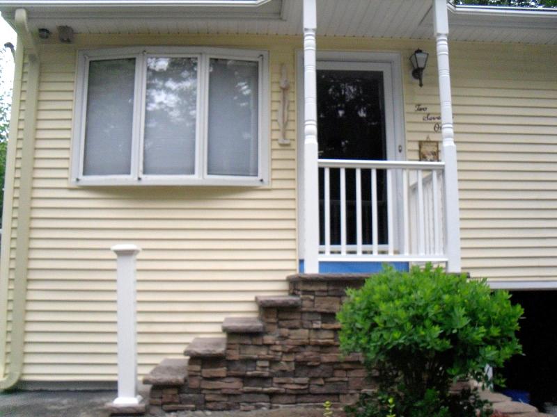 Copper gutters, ice belts, and slate roofing adorn this historical home's new sunroom.