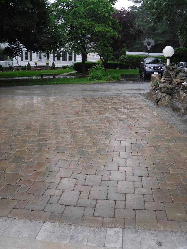 After several years of harsh New England weather, this driveway shows no signs of settling, puddling, or loose pavers.